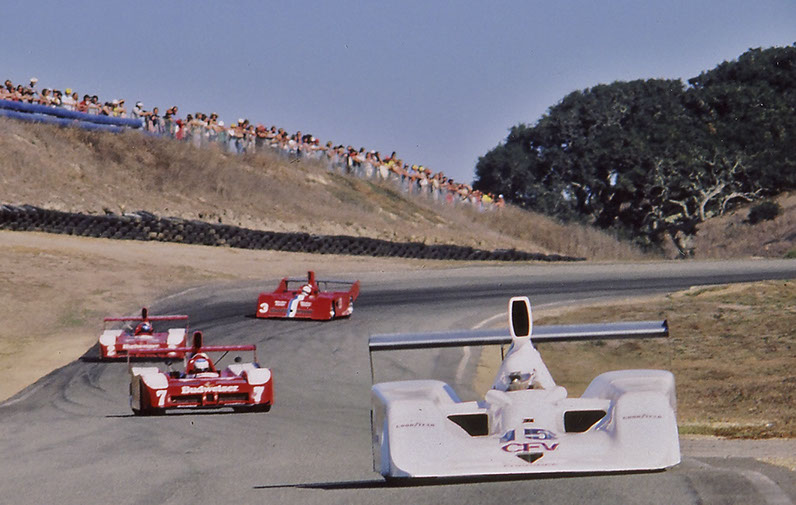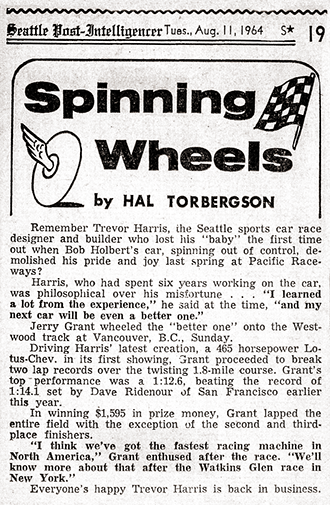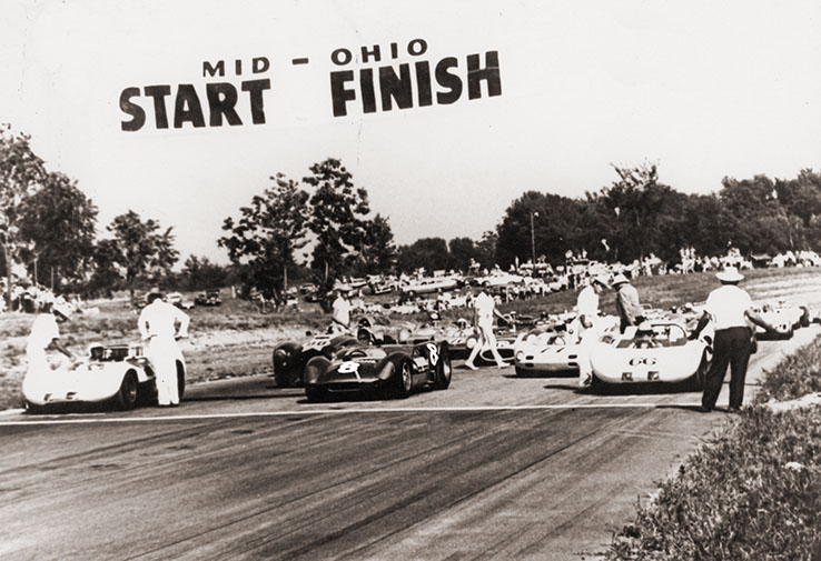 2nd race, Mid-Ohio 1964, qualified 2nd between 2 Chaparrals. Leads 1st 10 laps of race until brakes overheat.