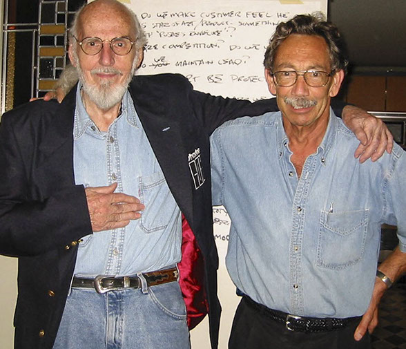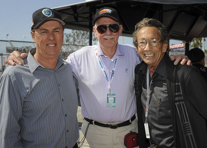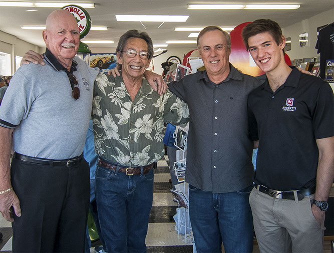 A 2015 meeting of Kas, Trevor and Geoff at AutoBooks in Burbank, where Kas was autographing his new Triumph book. Geoff’s son, Matt is on the right.