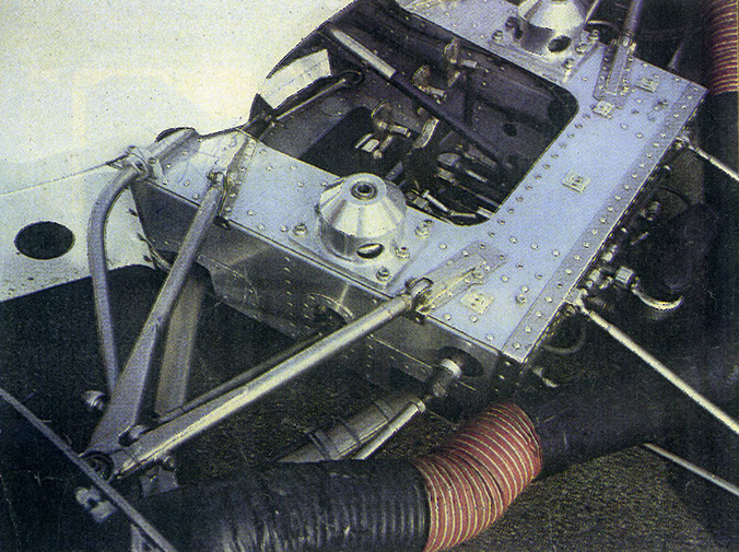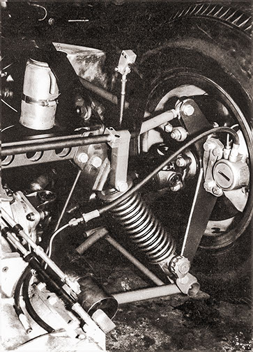 Two views of the new rear suspension with disc brakes, fabricated in 1963. Note,