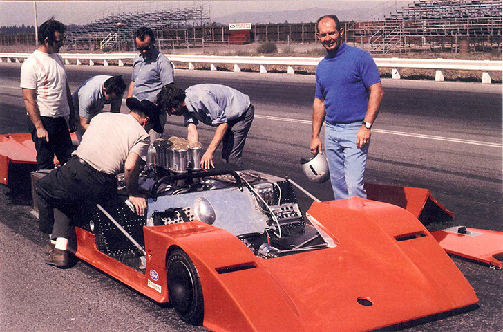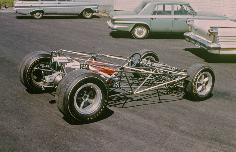 Designed and built the rear engine Chevy V-8 “Bardahl Special.” Driven by Jerry Grant in 1964 and 1965.