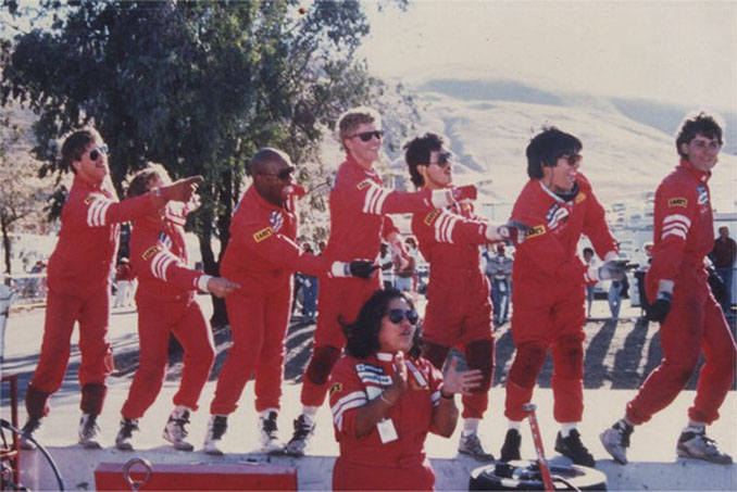Qualified 1-2 at Portland 1989. Trevor Harris, Don Devendorf, Wes Moss with Kas Kasner,