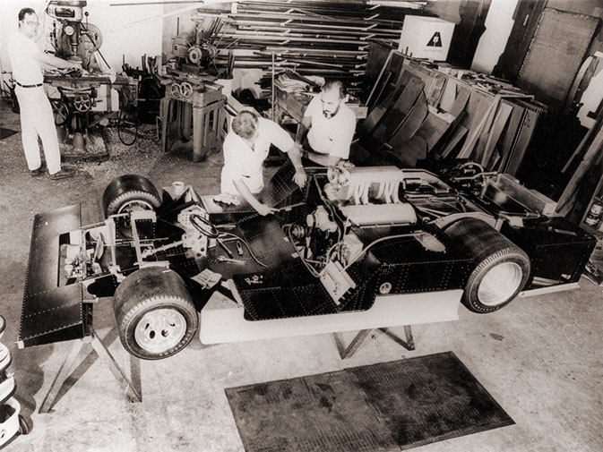 Harris Sports Car Special under construction in the primordial home garage – 1958.