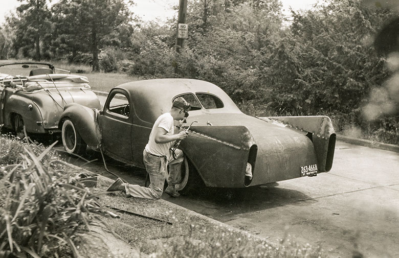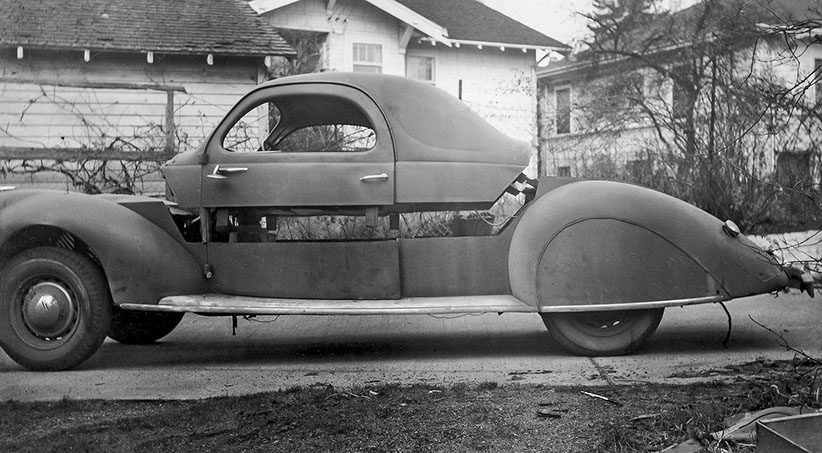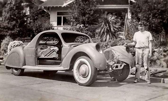 Harris’ first hot rod. Sectioned and totally modified a 1937 Lincoln Zephyr while in high school.